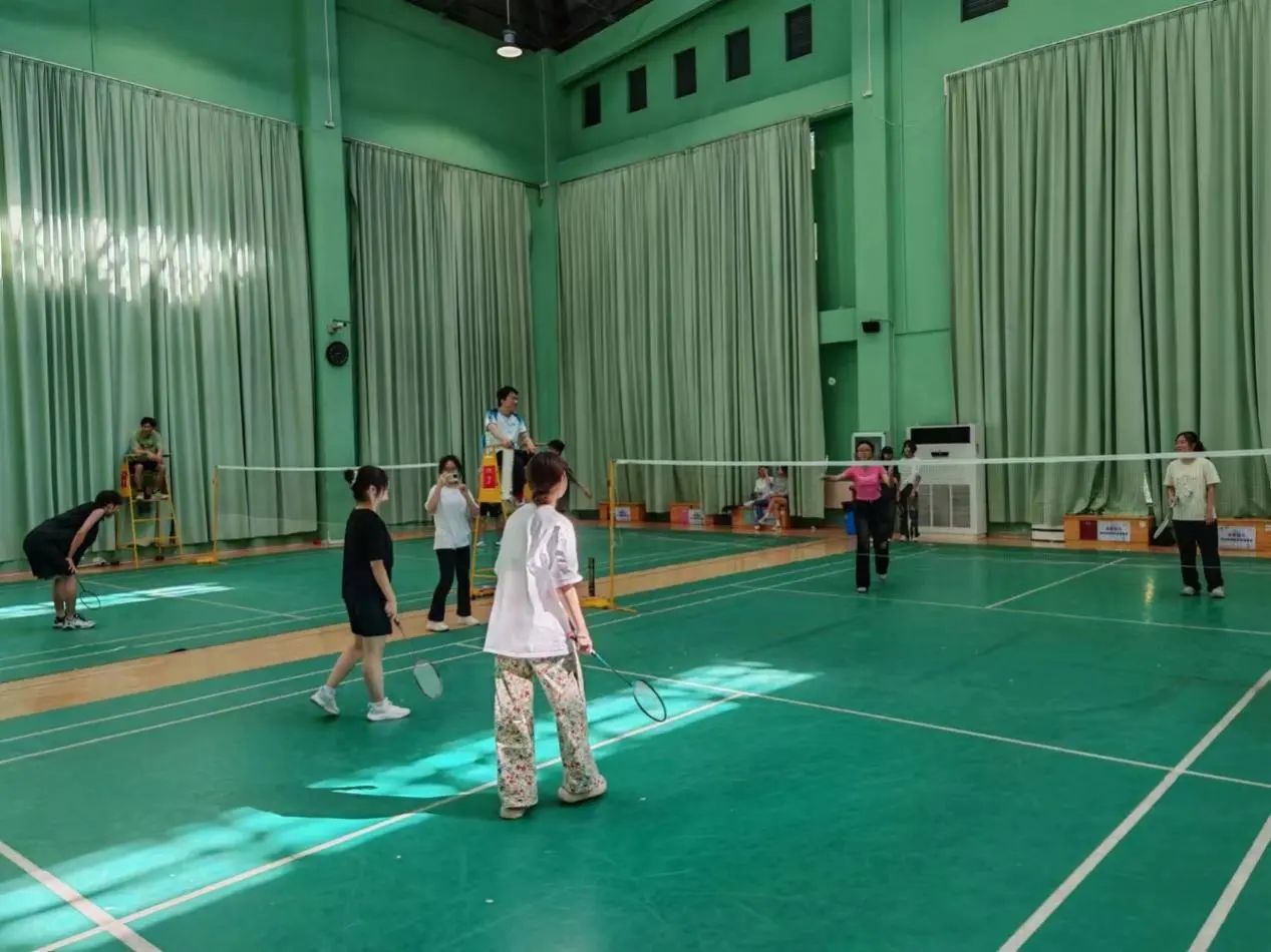 参赛选手们赛前热身、彼此激励,展现了极高的竞技热情。比赛分为男双、女双、混双和趣味项目,各个项目都吸引了众多观众为选手加油助威,现场气氛十分热烈。