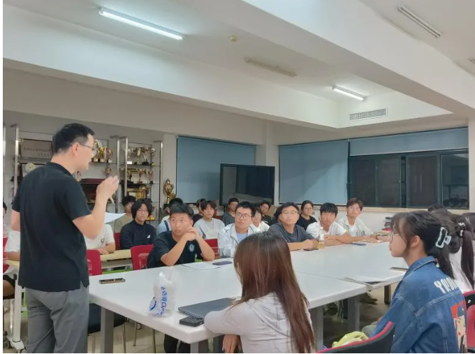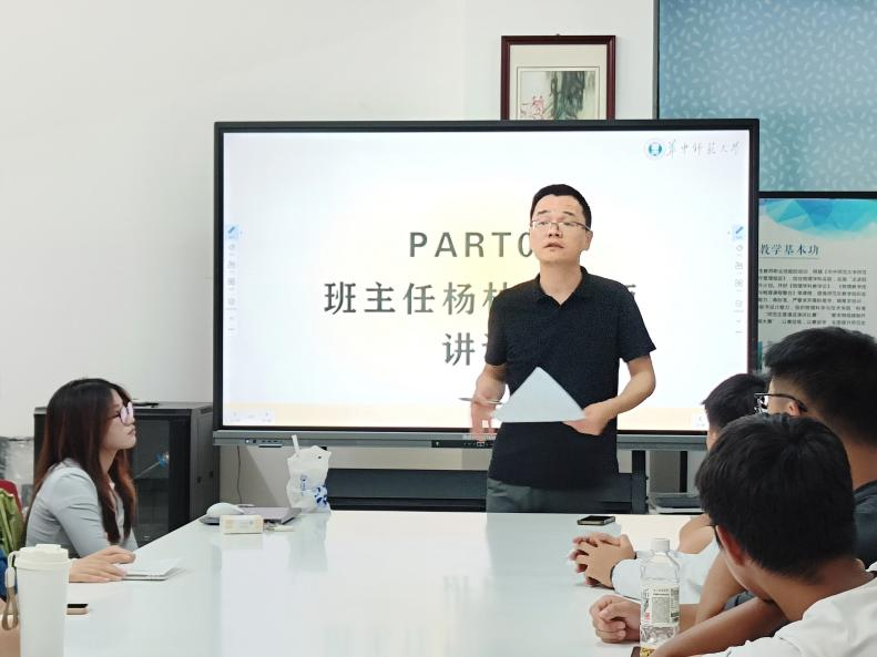 班会第一幕,班主任杨林涛进行了讲话。此次讲话中,他对在座所有同学进行了肯定,借量化数字增强大家自信心。他也客观地指出了大学与以往阶段的不同性:大学生活更加多元化,需要兼顾学习、生活、社交、兴趣爱好等多个方面。如何更好地适应大学生活并在上述各方面间找到平衡,班主任杨林涛也耐心地给予了一定的建议。