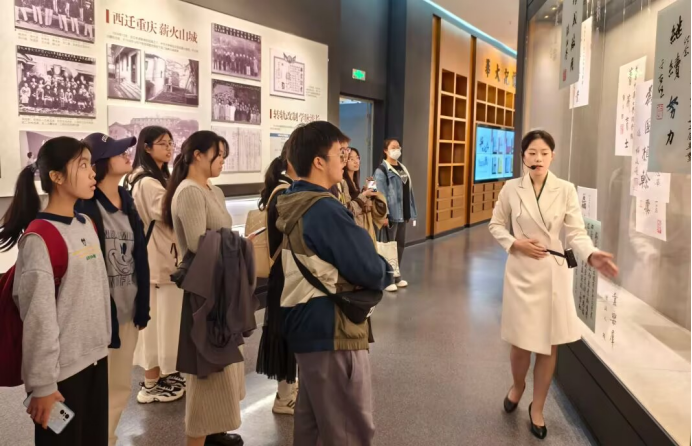 理论学习后,团员们来到校史馆。在校史馆工作人员引导讲解下,团员们有序参观。在铭刻着红色记忆的展位前久久停留,彼此分享对华师历史的感悟。通过本次参观,团员们进一步了解学校深厚的红色历史,体会华师精神,增强了对母校的认同感与归属感。