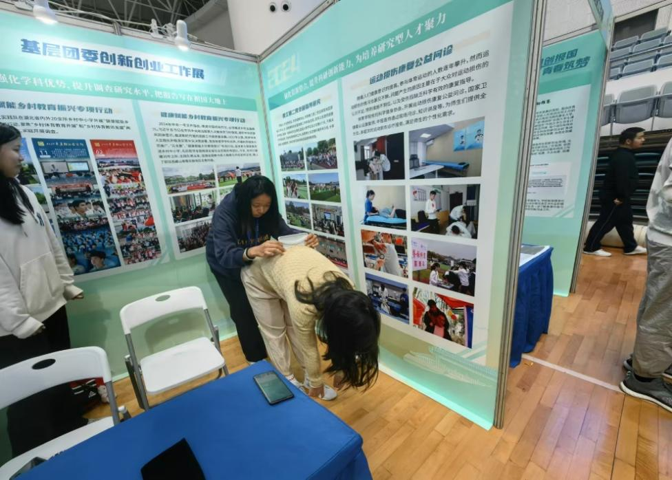 大家首先参观了物理科学与技术学院团委创新创业工作展,展位中展示了近年学院在科创工作方面取得的突出成果,包括强化校企合作促进资源对接、大学生创新创业等内容板块。学院充分发挥学科特色,鼓励学生投身到科技创新的实践中,在多项竞赛中取得了优异的成绩。同学们认真聆听,并就感兴趣的方向领域与在场的老师进行探讨交流。