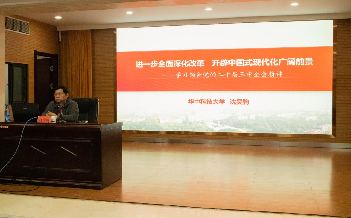同学们观看纪录片《铁血红安》,它如同一幅波澜壮阔的历史画卷,展现了红安人民在革命岁月中的不屈不挠。随后,华中科技大学马克思主义学院副院长沈昊驹教授作了题为《进一步全面深化改革,开辟中国式现代化广阔前景——学习领会党的二十届三中全会精神》专题讲座,为同学们带来了一场思想盛宴。他的精彩讲解使大家深刻理解了进一步全面深化改革一系列重大理论和实践问题,引导同学们坚定理想信念和政治立场。