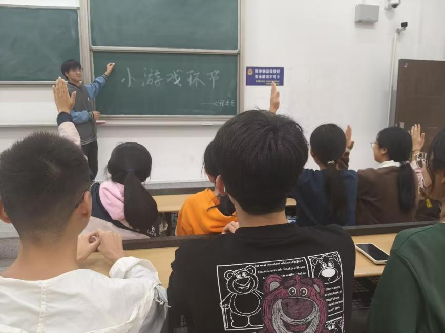 隋宇鑫首先介绍了活动目的和流程。随后,心理委员蓝翔乾带领同学们参与了“数字炸弹”、“打印机故事”等心理小游戏,现场气氛活跃,笑声连连。这些小游戏不仅有效缓解了考前的紧张气氛,舒缓了同学们的情绪,还增进了同学间的相互了解,形成团结友爱的班风。