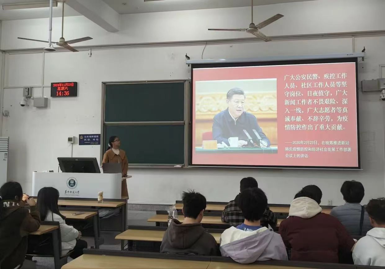 丁菲娅表示本次活动是为讲好志愿服务故事,强化青年志愿者荣誉感,增进同学们对志愿服务的感性认知。她以抗击新冠疫情期间无私奉献的志愿者群体为例,阐释志愿服务的关键意义,并带领同学们深入研习习近平总书记关于志愿服务的重要论述。同学们借此明晰了志愿者对社会的积极贡献,体会到了青年群体在志愿者队伍中所发挥的重要作用和突出价值。