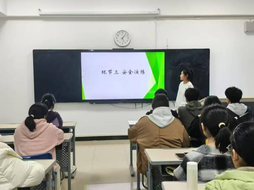 随后的知识竞赛环节将气氛推向高潮,各小组围绕消防安全、食品安全、出行安全等题目踊跃抢答。互动答疑阶段,有同学提出地震时如何避险、陌生链接如何识别等日常疑惑,同学们在讨论中科普了解决办法。活动还组织了同学们进行消防及地震避险演练,通过模拟火灾和地震的真实场景,帮助同学们掌握紧急情况的处理方式,提升大家应对突发情况的能力。