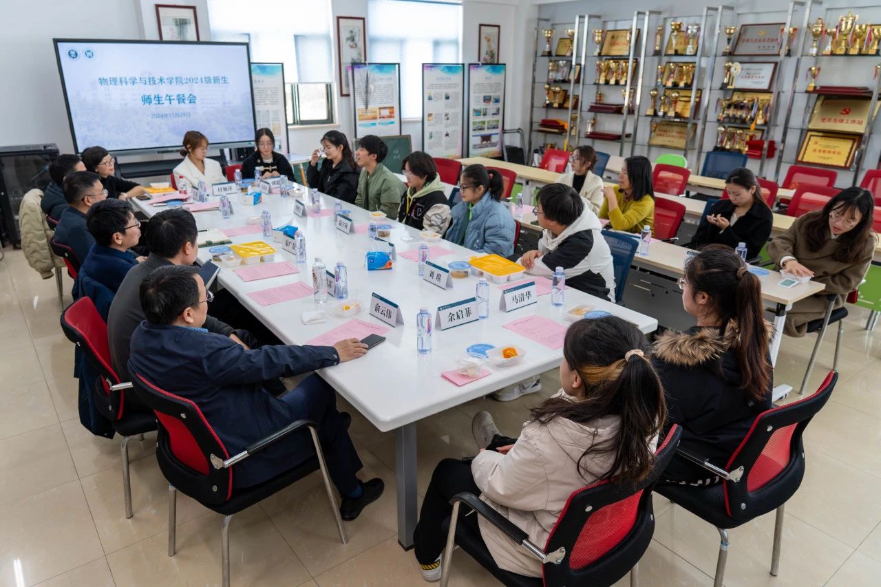 为进一步了解2024级新生到校后的思想、学习和生活动态,11月 28日,物理科学与技术学院于9551会议室举行2024级新生师生午餐会。学院党委书记金新利,院长秦广友,副院长俞云伟、施梳苏、王东,新生辅导员以及本研各专业新生代表共同参与活动,活动由院党委副书记马英主持。