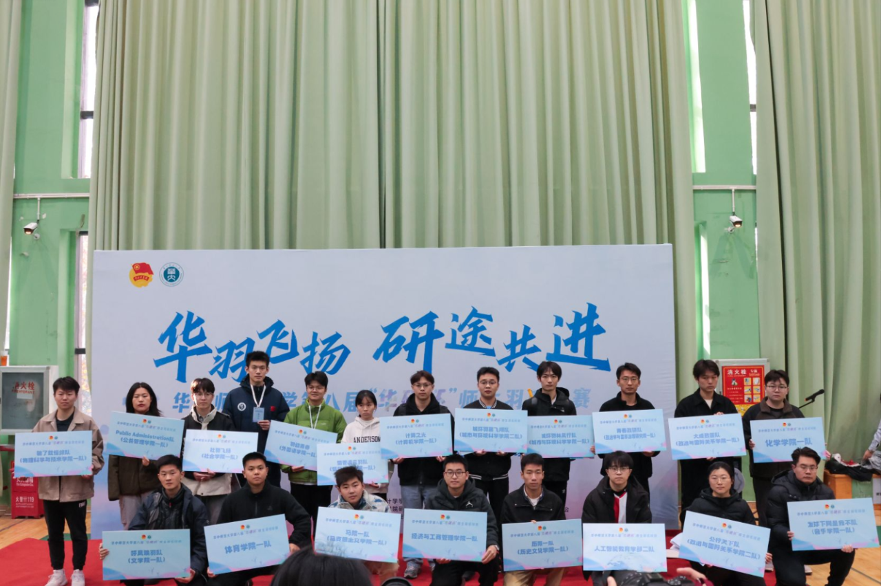 11月30日,华中师范大学第八届“华研杯”师生羽毛球赛圆满落幕,经过激烈角逐,我院师生球队从全校29支队伍中脱颖而出,最终获得大赛第八名的优异成绩。学院教师陈小宇、乔翠兰、谢丽受邀参加比赛。