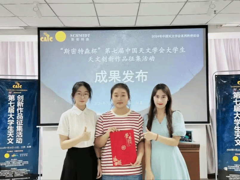 在大三学年的普通天文学专业选修课程中,李智慧接触到了天文学,并且与一群志同道合的伙伴一拍即合,打算共同创作一部天文微课,并参与相关的比赛。从一开始的主题确立,再到视频的制作,整个创作过程的每一步都是全新的领域。确立主题,需要四处搜集相关资料,正因此,团队中的每一个人都积累了大量的专业知识。除此之外,因为团队中人手不足,从编剧到配音,从美工到剪辑,每一个人都是身兼数职。正是这么多身份的加持,每一位团队成员都在这些领域中学到了相关技能。李智慧还参加了其他的各类比赛,例如有关师范生技能的“两字一话”比赛,提升自身技能的演讲比赛、青春诗会等,这些比赛不仅检验着她各方面的能力,也锻炼和提升着她的各种技能。