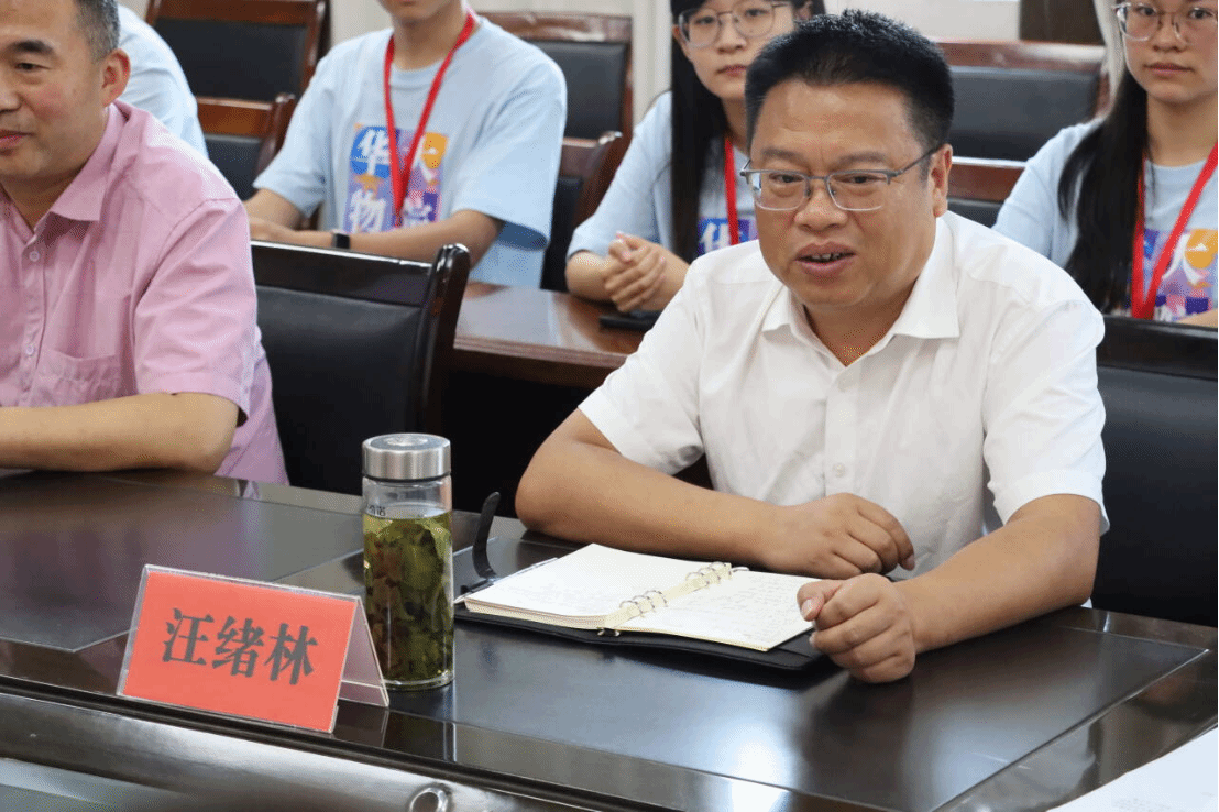 华中师范大学物理学院副院长施梳苏发表讲话。他首先感谢红安一中对本次实践活动的高度重视与精心筹备,对“优师计划”学生的热情接纳与悉心指导,并对华中师范大学物理学院的悠久历史和学科实力进行了简要介绍。施梳苏强调,与红安一中共建实习点是响应国家教育改革的重要举措,期待推动双方在课程开发、师资培训等方面的深度合作,助力红安基础教育发展,并希望华师学子能在红安这片红色热土上锤炼教学技能,成长为具有家国情怀的新时代教师。