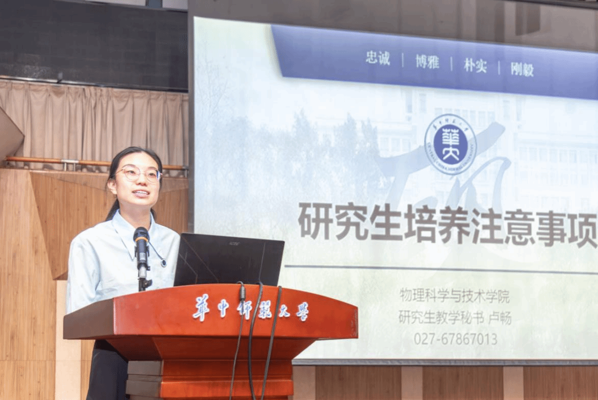 2023级凝聚态物理专业博士研究生刘浩泉作为老生代表发言。他以“格物致理,琢玉成器”的院训为引,娓娓道来自己在华师九年的深耕历程:“从本科到博士,我专注于人工智能与物理建模解决网络领域的难题,发表多篇高水平论文,获湖北省优秀科技论文等荣誉。”他结合习近平总书记对青年的勉励,鼓励各位新生“唯有迎难而上、久久为功,才能突破学习和科研瓶颈”。