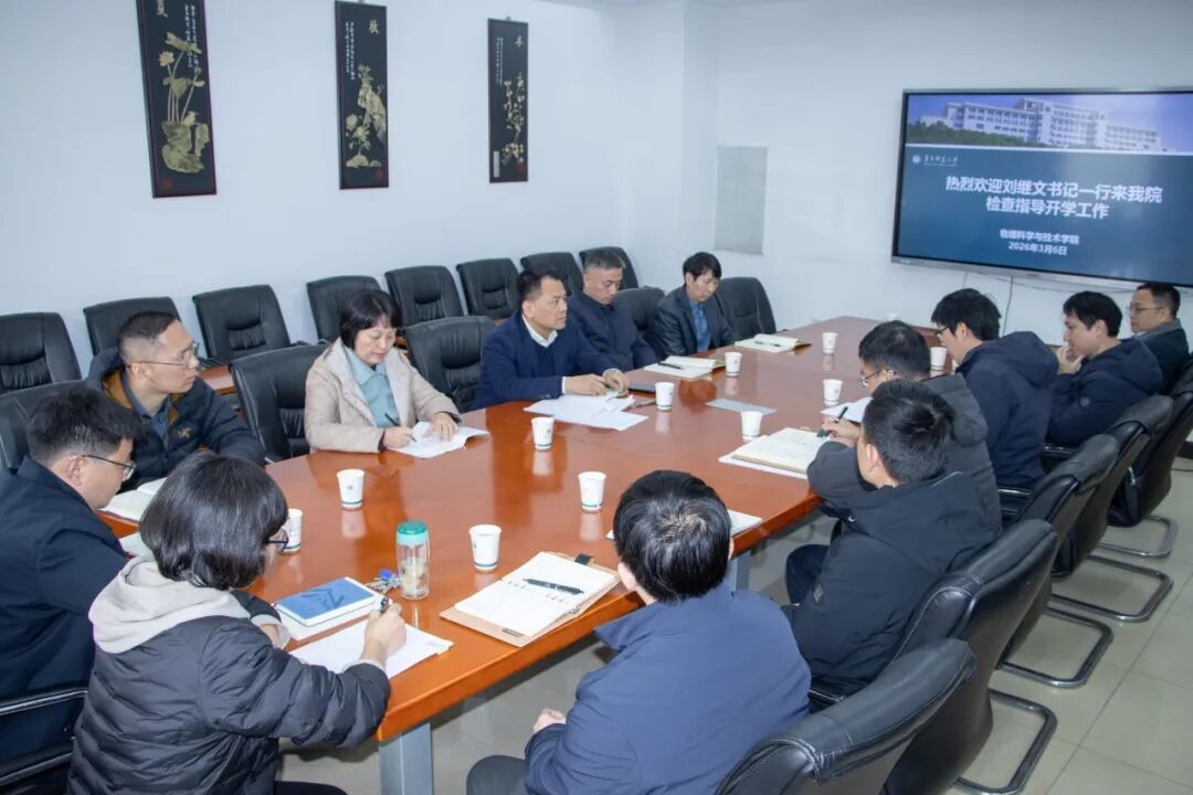 3月6日,校党委副书记、纪委书记刘继文一行来到物理学院开展2026年春季学期开学检查工作,校纪委副书记兼纪委办公室主任、监察处处长杨青松,党委巡察工作办公室主任王琍,出版社党委书记廖卫鹏陪同检查。学院党政领导班子全体成员参会。