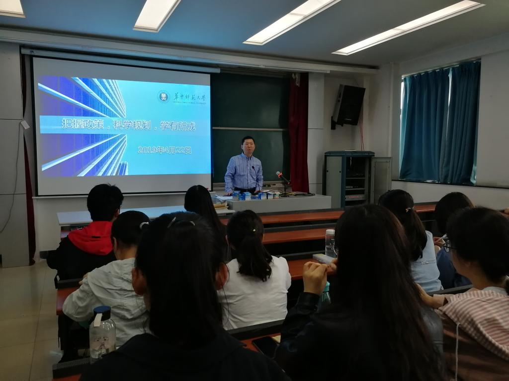 万枞老师以“把握政策,科学规划,学有所成”为主题,向同学们讲解了学籍管理规范的新要求,同时对学籍管理细则进行了详细解读。万枞老师从学制、学习年限与学分、课程考核与成绩记载、分流选择专业及转专业、降级与退学、毕业,结业和延期毕业、授予学位等方面,围绕学生在校学习的全过程,结合同学们的学习过程中的具体情况,对学籍管理各方面内容进行了具体深入的解读。