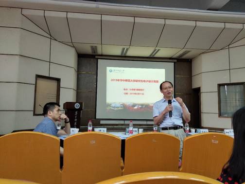(通讯员 杜新晔 孙晴晴 王秋革)为推进研究生培养机制改革,提高我校研究生创新实践能力,促进产学研深度融合,同时选拔优秀作品参加全国比赛。2019年6月11日下午2点,由华中师范大学研究生院(党委研工部)主办,物理科学与技术学院承办的“兆易创新杯”第十四届研究生电子设计竞赛华中师范大学校内选拔赛正式拉开帷幕。本次竞赛分为技术竞赛和商业计划书专项赛两大部分,技术类竞赛在9号楼一楼报告厅举办,商业类竞赛在9号楼535会议室举办,竞赛由物理学院研究生辅导员王秋革老师主持。出席活动的领导及嘉宾有:华中师范大学党委研工部部长杨军、华中师范大学团委书记徐刚、物理科学与技术学院党委书记张明生、华中师范大学研究生院副院长叶飞、物理科学与技术学院党委副书记曹阳。参与技术类竞赛评审工作的老师有:刘守印教授、黄光明教授、杨河林教授、姚远副教授、林海副教授、张新晨副教授;参与商业类竞赛评审工作的老师有:本科生院丁玉斌老师、本科生院程凯老师、校团委创新创业部部长陶力老师、物理学院团委书记梁皓东老师。