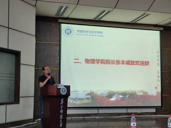 院长张本威向全院2019级研究生致欢迎辞,他对来我院攻读硕、博士学位的各位同学表示了欢迎。他希望全体物院新人锐意进取、砥砺奋进,成就新时代新作为新梦想。最后他祝愿大家在深造期间收获丰硕成果,成为更好的华师物院人。