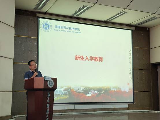 (通讯员 范良辰 刘沛泽)9月4日下午,物理科学与技术学院2019级研究生开学典礼暨新生入学教育在九号楼一楼报告厅顺利举行。学院党委书记张明生、院长张本威、党委副书记曹阳、副院长俞云伟、副院长黄光明、各学科负责人及部分教师代表出席。学院2019级全体研究生参加。典礼由学院党委副书记曹阳主持。