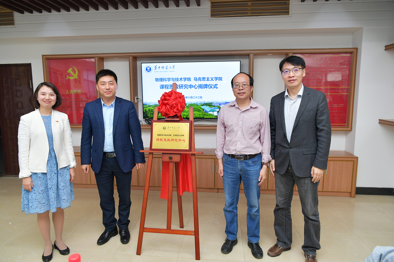 校党委宣传部部长王长华、本科生院院长万坚、物理科学与技术学院院长张本威和马克思主义学院分党委书记孙永祥为课程思政研究中心揭牌。两院领导为马克思主义学院王世鹏、物理科学与技术学院邓为柄等11位首批研究中心成员颁发聘书。