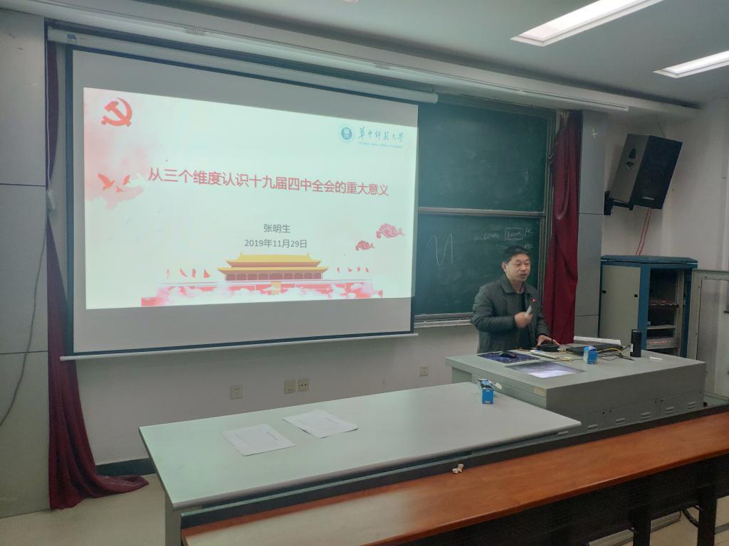 为丰富培训形式,提升培训效果,本次培训班,采用理论教学、影像教学、主题研讨、参观中共五大会址和农民运动讲习所和自主学习相结合的形式进行。学院党委书记、副书记带头讲授专题党课。院党委书记张明生讲授《从三个维度认识十九届四中全会的重大意义》,带领学员深入学习领会党的十九届四中全会精神;院党委副书记曹阳讲授《习近平全国教育大会重要讲话精神解读》,引导学员深入学习习近平总书记关于教育工作的重要论述;院党委副书记马英讲解《党员的义务和权利》,让全体发展对象更全面、更深入地认识了“党员的条件、义务和权利”,明确了奋斗目标。此外,此次培训班还特邀武汉大学党委组织部副部长王三礼为为学员开展《新形势下党内政治生活准则》专题讲座。