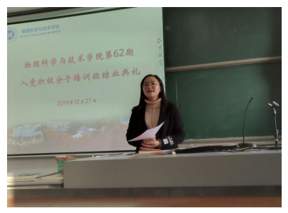 典礼开始,带队老师王惠娟带领全体学员回顾了本期入党积极分子培训各项培训活动的开展情况,并介绍了班级结业考试情况。她表示此期入党积极分子培训较为成功,大部分同学表现良好,希望同学们能继续努力,争取早日入党。