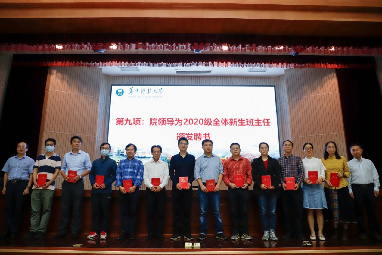 典礼最后,党委书记张明生和院长张本威为2020级全体新生班主任颁发聘书并合影。在典礼结束后,各班班主任组织了新学期的第一次班会,本次新生开学典礼暨班主任见面会圆满结束。
