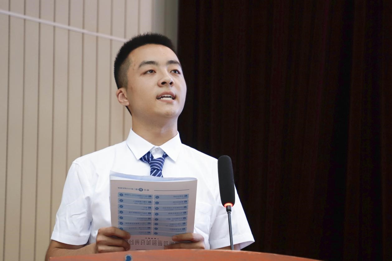 “夸克与轻子物理”教育部重点实验室副主任丁亨通教授作为教师代表发言。他和同学们分享了自己的求学历程。他说,人生是场马拉松,而兴趣是最好的老师,希望同学们能够终身学习,找到自己的兴趣所在,并努力钻研探索,脚踏实地的践行所思所想。