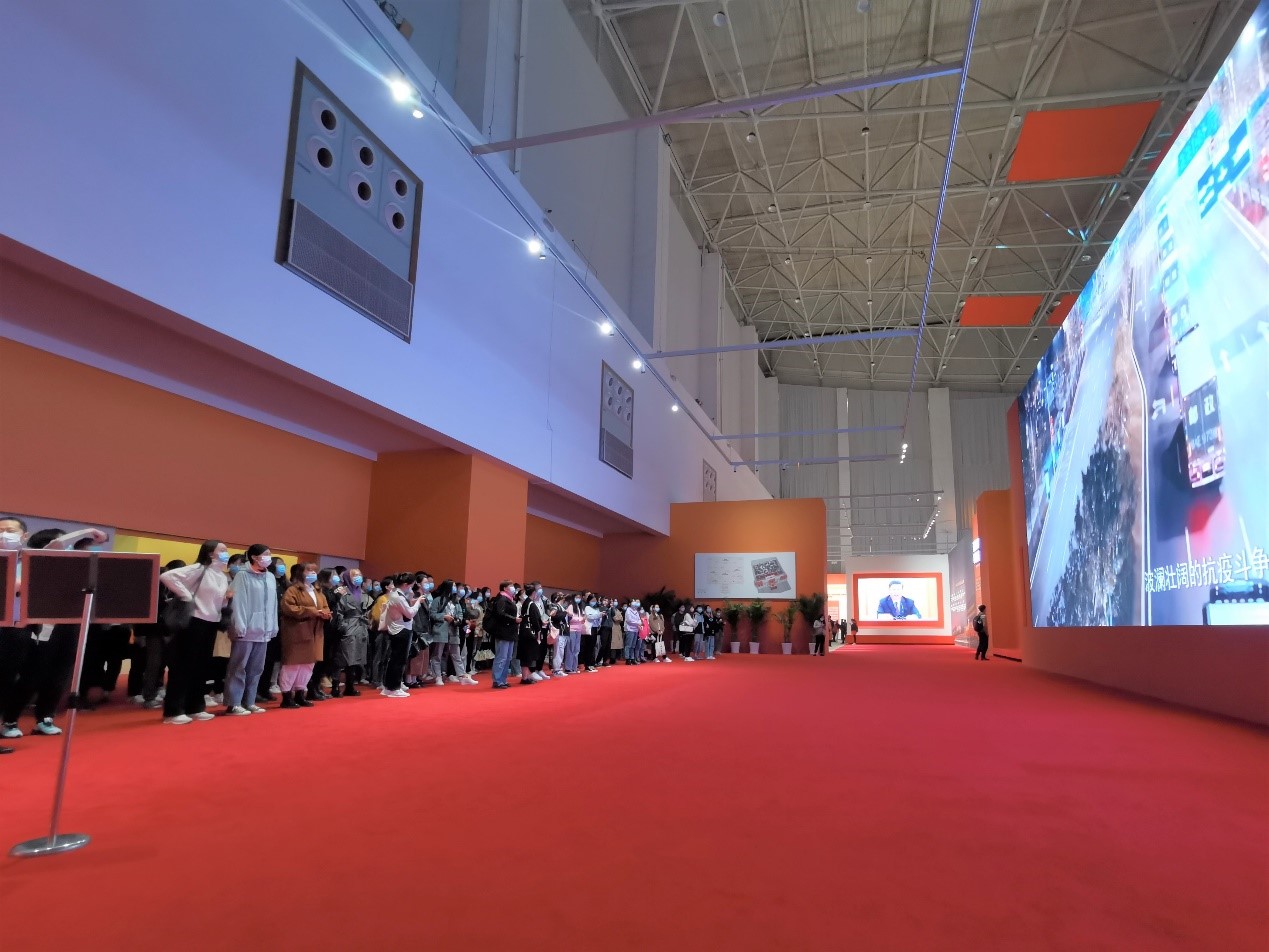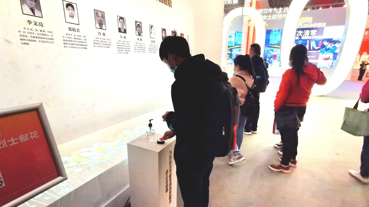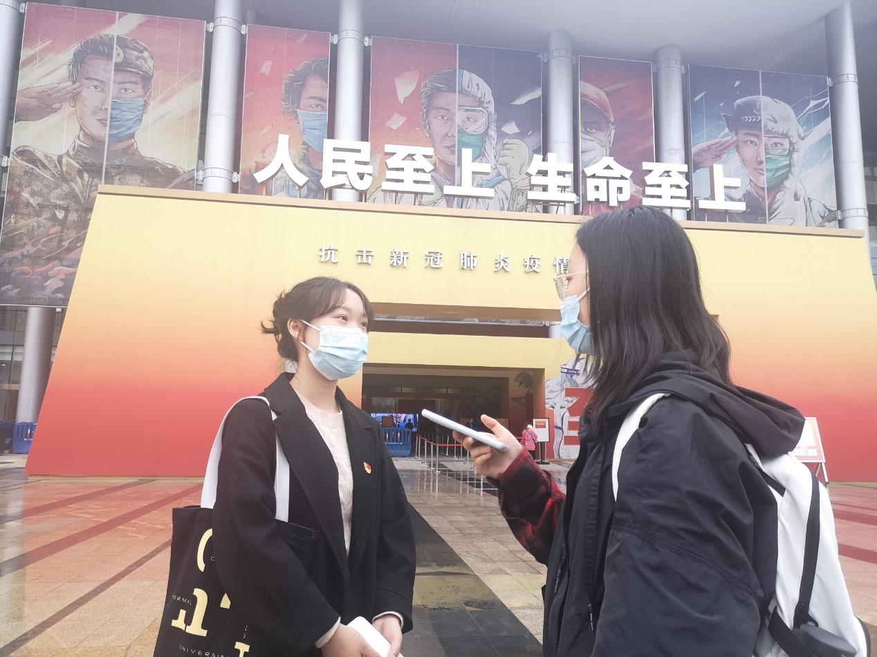 同学们最后来到了“疫后重振·浴火重生”展区。4月8日离汉通道管控正式解封以来,武汉控疫与复工复产并举、企业天团汇聚、街头夜市重现——武汉城苏醒了!看到这样生机勃勃的武汉,同学们严肃的表情和缓了许多。“在后疫情时代,我有幸生活在武汉,我为这座英雄的城市而动容;我也无比期待它能重新绽放,开启新征程的建设。”程昕辉说。