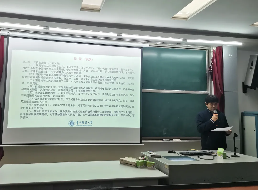 会议第三项,由纳米教工支部书记祝志宏诵读党章第三条“党员义务”。通过对党员义务的回顾,增强全体党员的责任感和使命感,让各位党员铭记中国共产党人不忘初心、牢记使命的庄严承诺。