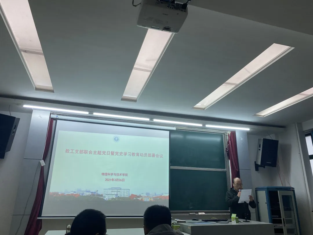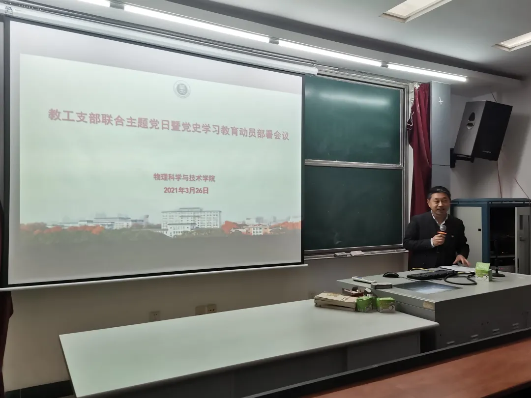 (通讯员 梁皓东 姜梦圆)3月26日,物理科学与技术学院在9号楼12楼报告厅开展教职工支部联合主题党日暨党史学习教育动员大会,集体学习习近平总书记在党史学习教育动员大会重要讲话精神和校党委书记赵凌云在学校党史学习教育动员大会上的指示要求,并就在我院深入开展党史学习教育进行部署动员。会议由院长张本威主持,全体教工党员及学生党员代表参会。