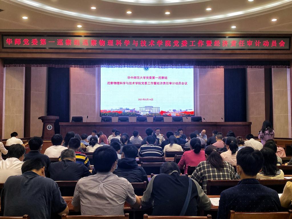 根据学校党委关于巡察工作的统一部署,2021年5月14日上午,华中师范大学党委第一巡察组巡察物理科学与技术学院党委工作暨经济责任审计动员会在科学会堂一楼报告厅召开。校党委巡察办主任王旺胜、校党委第一巡察组组长林更茂及第一巡察组全体成员、经济责任审计组组长王军及审计组全体成员、物理科学与技术学院领导班子成员、党委委员、纪检委员、党支部书记、民主党派人士、在职教职工、离退休老同志代表和学生代表等出席会议。动员会由物理科学与技术学院党委副书记、院长张本威主持。