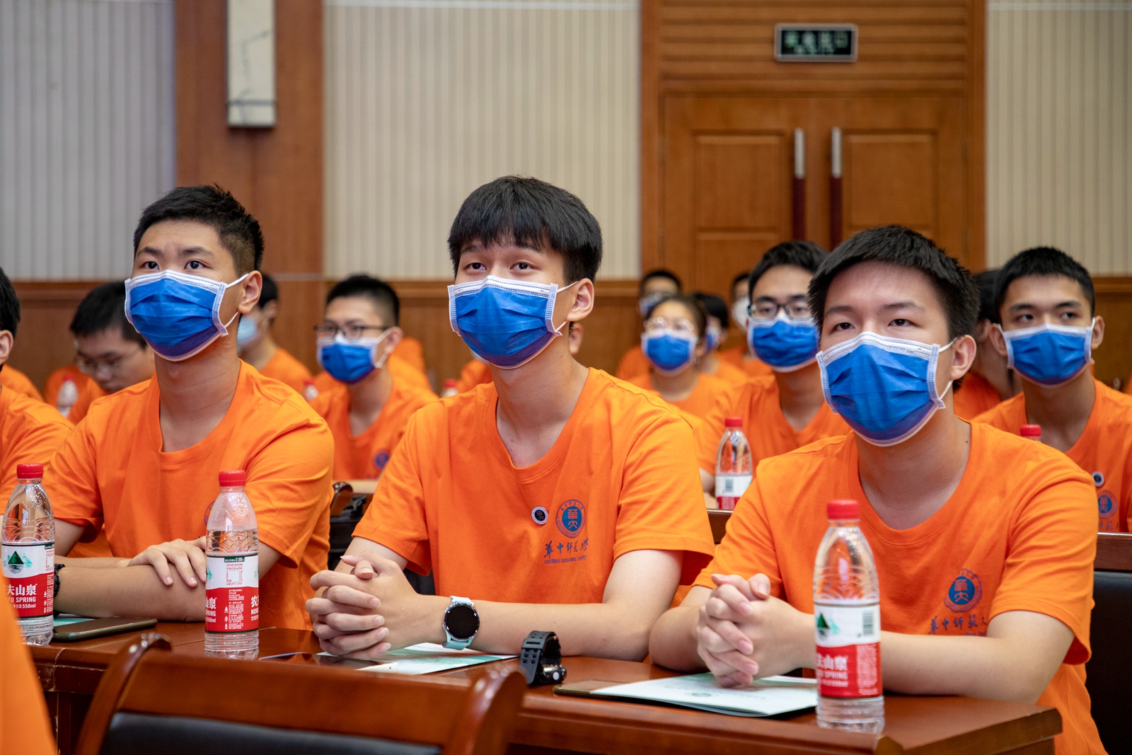 典礼结束后,各班班主任和同学们在九号楼迎新喷绘前拍摄第一张大学班级合影,并组织了新学期的第一次班会,本次新生开学典礼暨班主任见面会圆满结束。