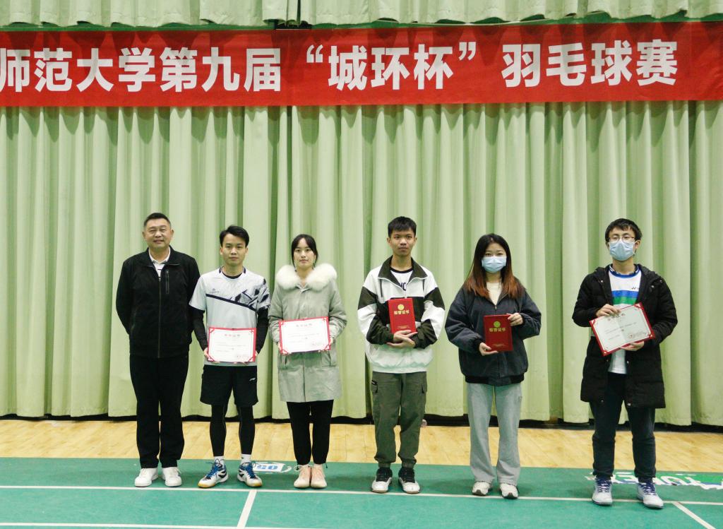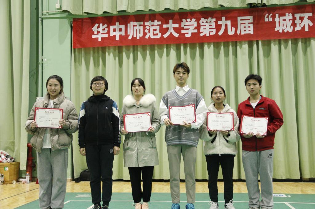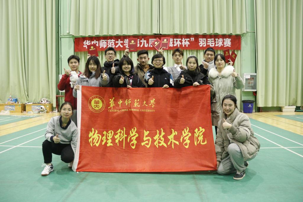 12月5日,由华中师范大学体育运动委员会主办、城市与环境科学学院承办、羽毛球协会协办的第九届“城环杯”羽毛球比赛落下帷幕。在为期三天的比赛中,物理学院羽毛球队小组赛五场全胜,以小组赛第一名的好成绩轻松出线,一路挺进半决赛,最终取得第四名的优异成绩,并荣获“人气球队”的称号。此外,傅塞渊、彭瑞分别获得了“人气女球员”、“人气男球员”称号,韦锦卉、王建慧获得了“人气组合”的称号。