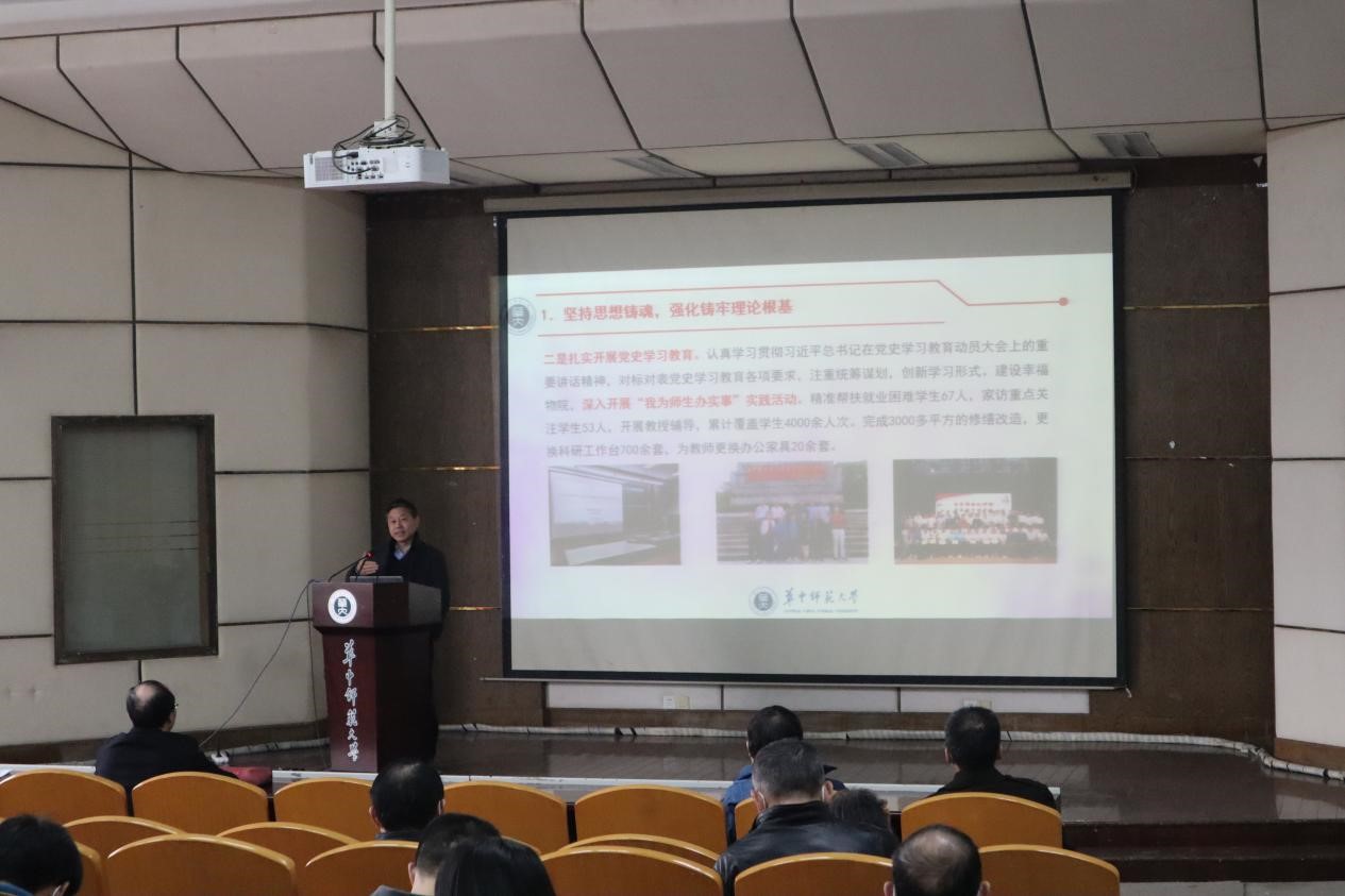 报告指出,2021年,学院班子认真组织学习宣传贯彻习近平新时代中国特色社会主义思想、党的十九届五中、六中全会精神,引导广大师生坚持“两个确立”,不断增强“四个意识”、坚定“四个自信”、做到“两个维护”;对标对表党史学习教育各项要求,深入开展“我为师生办实事”实践活动;全程配合做好了校内巡察工作,巡察整改任务到12月底完成90%;班子认真落实意识形态工作责任制,完善民主集中制,组织建设取得较好工作成效。在中心工作方面,学院深入推进“三全育人”,完成“三全育人”综合改革试点单位验收工作,人才培养成果卓著,物理学成功入选教育部基础学科物理学拔尖学生培养计划2.0基地。学院教师队伍建设和科研工作也取得新成就。2022年,班子将进一步在党史学习成果转化、学院发展难题破解、服务师生的深度上奋发有为。