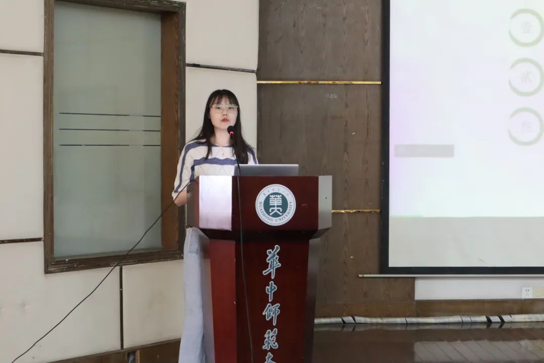 会议伊始,2019级优秀硕士毕业生周婷、武琰杰进行毕业论文经验分享。周婷同学就毕业论文写作流程、论文框架与格式、写作相关注意事项三个方面进行分享。她建议同学们在研究进展与意义方面可以做一个流程图,在论文的内容方面要注意层次性和逻辑性,形式上要注意图标、符号等的规范性。武琰杰同学从整体框架、常用软件及毕业论文的写作等方面进行介绍。在论文框架方面,他为大家展示了基本的论文框架结构。武琰杰还细致地向向大家介绍了常用的软件,并论文的格式方面给出了一些建议。