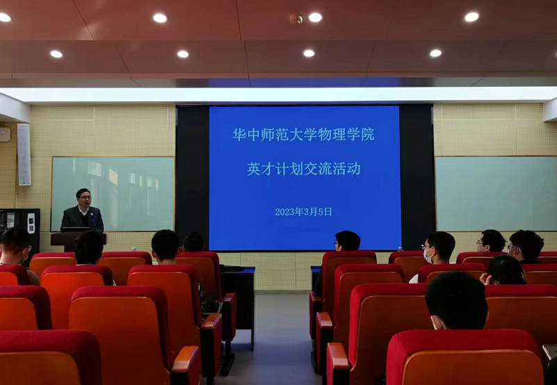 3月5日上午,华中师范大学物理学院开展了“英才计划”交流活动。湖北省青少年科技中心管理办公室周莹、本科生院副院长胡中波、物理学院党委书记张明生、物理学院教学副院长吴少平,“英才计划”导师秦广友教授、陈绍龙教授、丁亨通教授、尹航教授和入选2023年“英才计划”的11名高中生及其家长参加了本次活动。