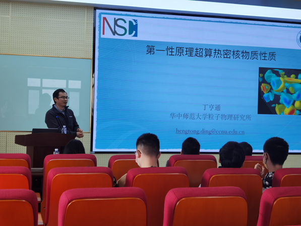 尹航教授和丁亨通教授分别从实验和理论的角度介绍了粒子物理的前沿研究进展。尹航教授简要回顾了人类观察物质世界的历史,着重介绍了目前最强大的粒子加速器:欧洲核子中心的大型强子对撞机。报告通过动画的形式,向同学们介绍了加速器的原理,形象描述了高能粒子加速、对撞的整个过程。丁亨通教授从“21世纪物理学领域11⼤未解之谜”出发,详尽地向同学们讲解了“超⾼温或超⾼密度下的新物质形态”、“宇宙是如何诞⽣的”等问题。他说,对这些基本科学问题的回答将帮助我们理解宇宙万物存在的奥秘并影响未来几⼗年科学的发展。