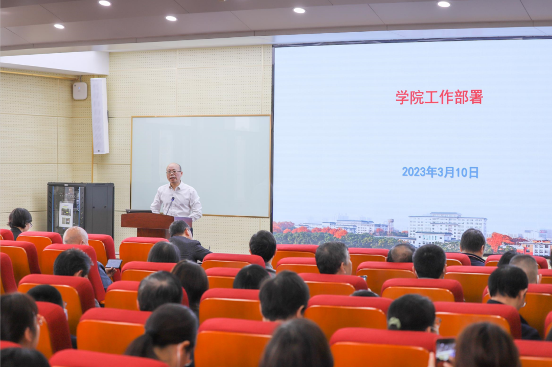 在部署学院工作阶段。院长张本威对学院2023年学科建设、队伍建设、人才培养、科学研究、对外交流合作等工作做总体介绍。他强调,要加强教师综合实力的培养,推动人才引育相关举措,进一步建设好拔尖学生培养计划2.0基地。张本威总结了学院工作发展情况,指出要从教师队伍的更新交替、学生培养的社会贡献来共同促进学院发展,全院上下要凝聚力量、奋发图强,推动学院事业再上一个台阶。