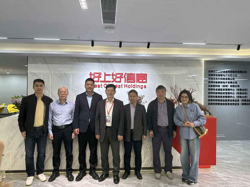 14日下午,张明生、张本威等又赶到深圳昊源诺信科技有限公司。公司总经理欧阳浩校友热情接待了一行,并介绍了公司的发展状况。双方就合作开展人才培养、实验室共建以及就业招聘等工作充分交换了意见。