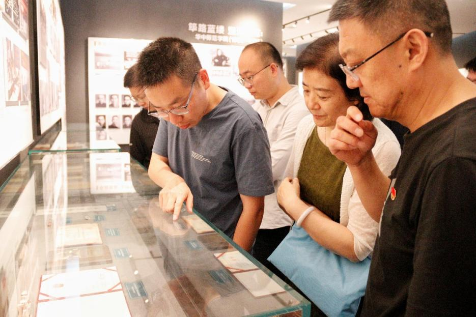 讲解员以学校发展足迹为主线,以图文展板、实物展示、场景还原、多媒体放映及互动等形式向学员们介绍学校发展历史,学员们沿着“印象华师”、“百年辉煌”、“世纪华章”三个展厅,一同回顾了学校一个多世纪的办学历程。