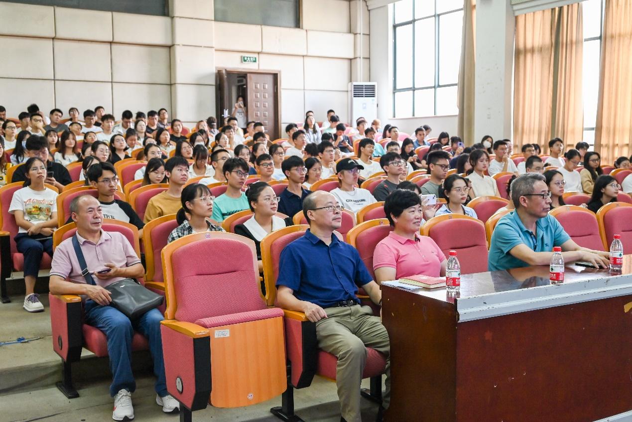 9月15日下午,学院83级校友王玉成受邀回校在九号楼一楼报告厅为学院本研学生们带来以“学好物理,遇见美好”为主题的精彩报告。院长张本威、学院党委副书记曹阳参加本次分享会。