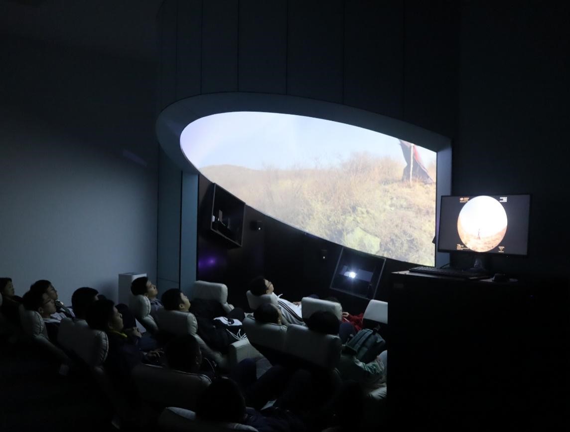 在天文科普教室内,同学们首先观看了学院精心准备的天文科普视频。这部影片生动展现了我国古代天文学家、巡天先驱郭守敬的卓越天文成就,引导同学们穿越时光,追溯中华古代天文的光辉历史。球幕数字放映环境营造了宛如置身宇宙深空的感觉,同学们仿佛漫步在星辰大海中,尽情领略宇宙的无限神奇。