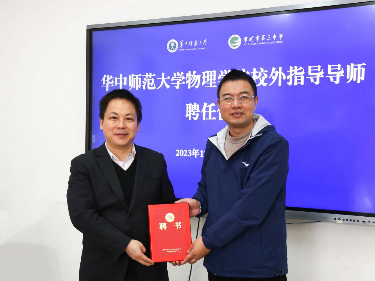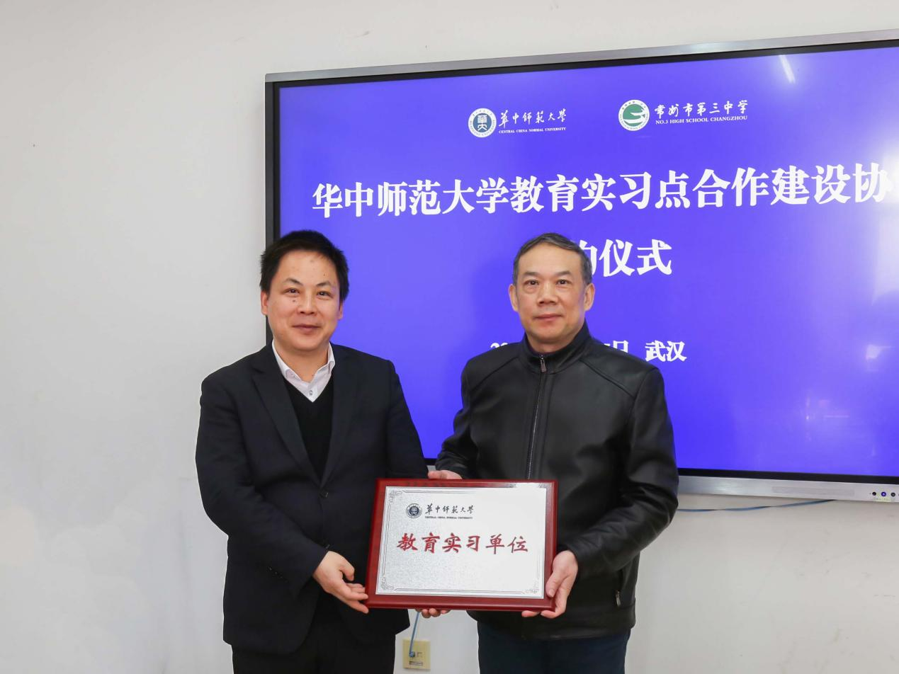随后,我院为常州市第三中学授牌“华中师大物理学院教育管理实习单位”并签订实习合作协议。