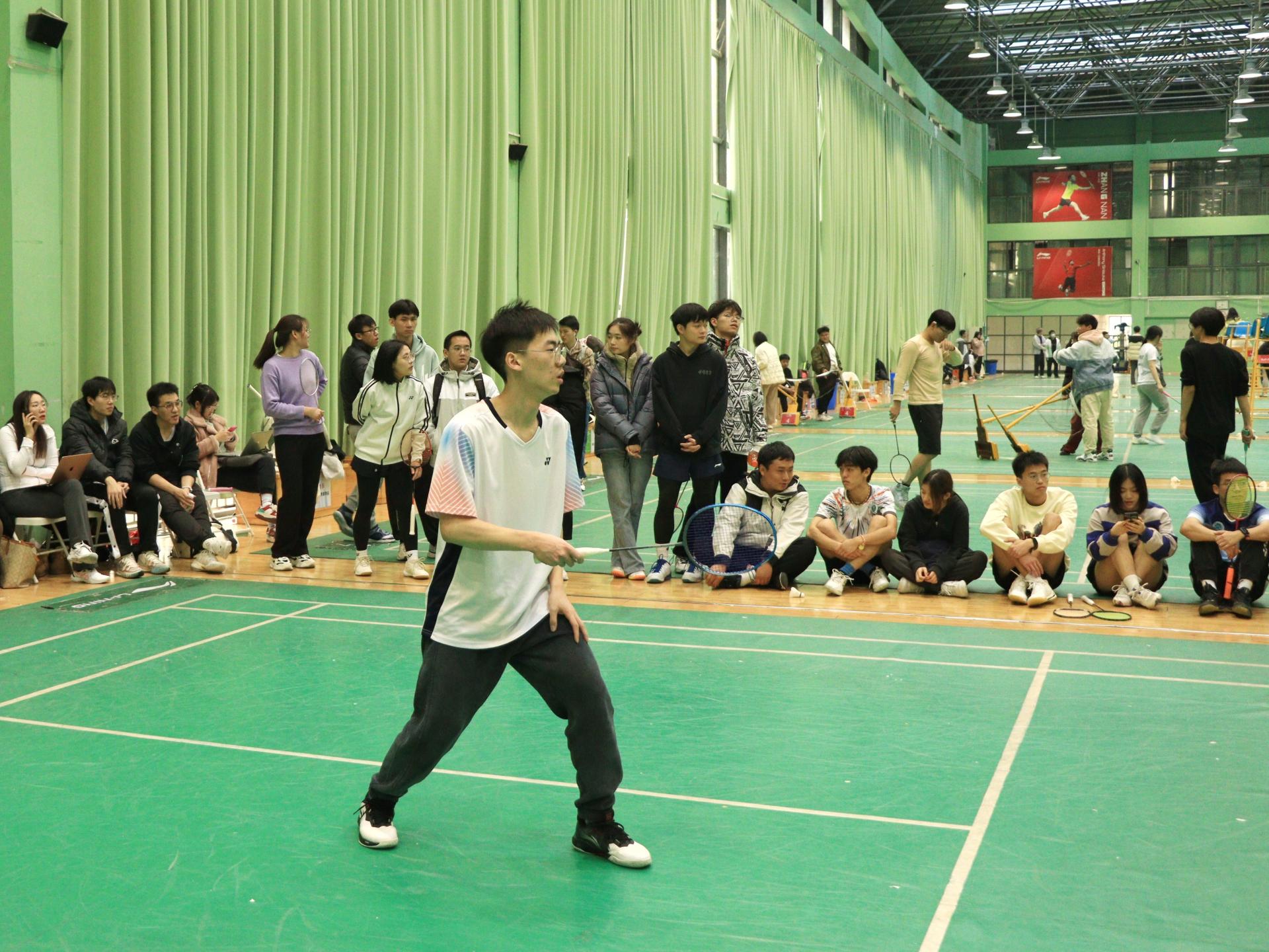 12月3日上午,学院球队以小组第一的成绩出线八强。在随后进行的四分之一决赛和半决赛中,分别与法学院、人工智能教育学部羽毛球队对战,顺利晋级决赛。当天下午,队员刘子路代表学院参与决赛首场比赛男单对决。面对教育学院羽队选手的强劲实力,他严阵以待,推挑勾搓、抽劈杀吊,在赛场上留下了精彩瞬间,赢得了现场观众的掌声。