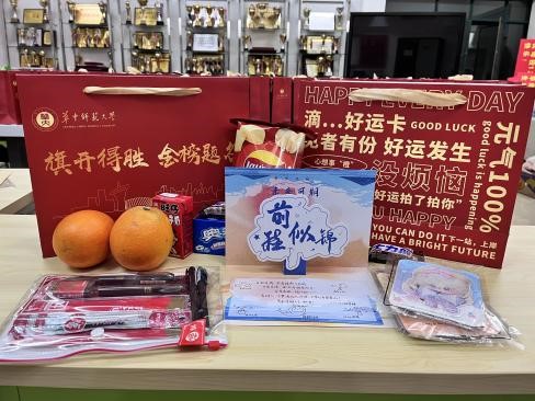 学院对于本次考研慰问活动高度重视,从礼品袋的设计到物品的选取都经过精挑细选,大礼包内包含了考研文具套装、橙子、奥利奥、士力架、暖贴、乐事薯片等暖心小礼物,预祝考研学子心想事“橙”,“乐事”将至,在考场上能够“巧克”难关,一战上岸!