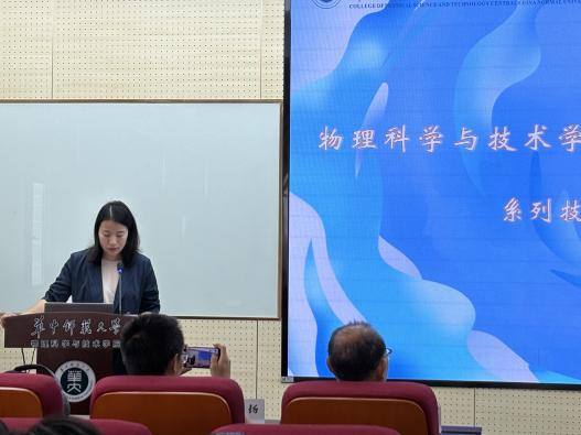 4月19日下午,“汲物载梦·携理启航”第四届研究生教学创新大赛系列专题培训讲座第一期顺利开展。本期培训邀请了华师一附中高中部徐明、詹扬两位老师为同学们进行讲座分享。活动由研究生辅导员王秋革主持,物理教育研究所所长冯秀梅教授出席本次培训。