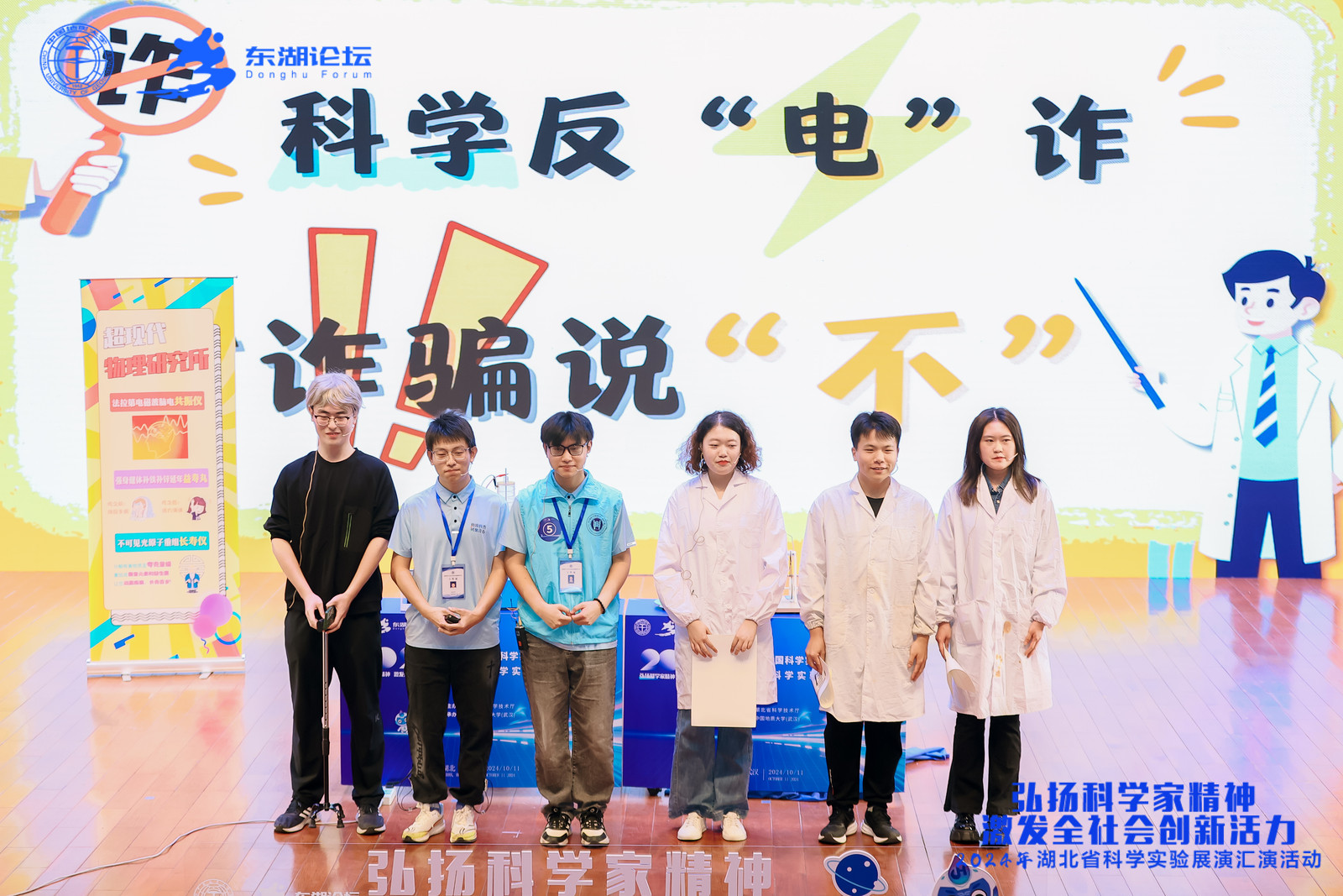 10月11日,第七届全国科学实验展演汇演活动暨湖北省科学实验展演活动于中国地质大学(武汉)举行。本次活动由湖北省科学技术厅主办,中国地质大学(武汉)承办,来自湖北省科研院所、市州科技馆和高校的80余支队伍参加比赛,共20支队伍进入决赛。由我院6名本科生组成的“科学反‘电’诈”团队以优异的成绩成功入围决赛,并获得三等奖,这是我院学子第一次参加该项系列赛事。