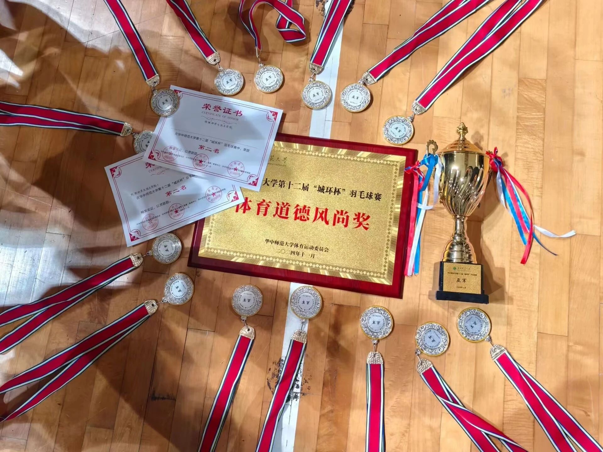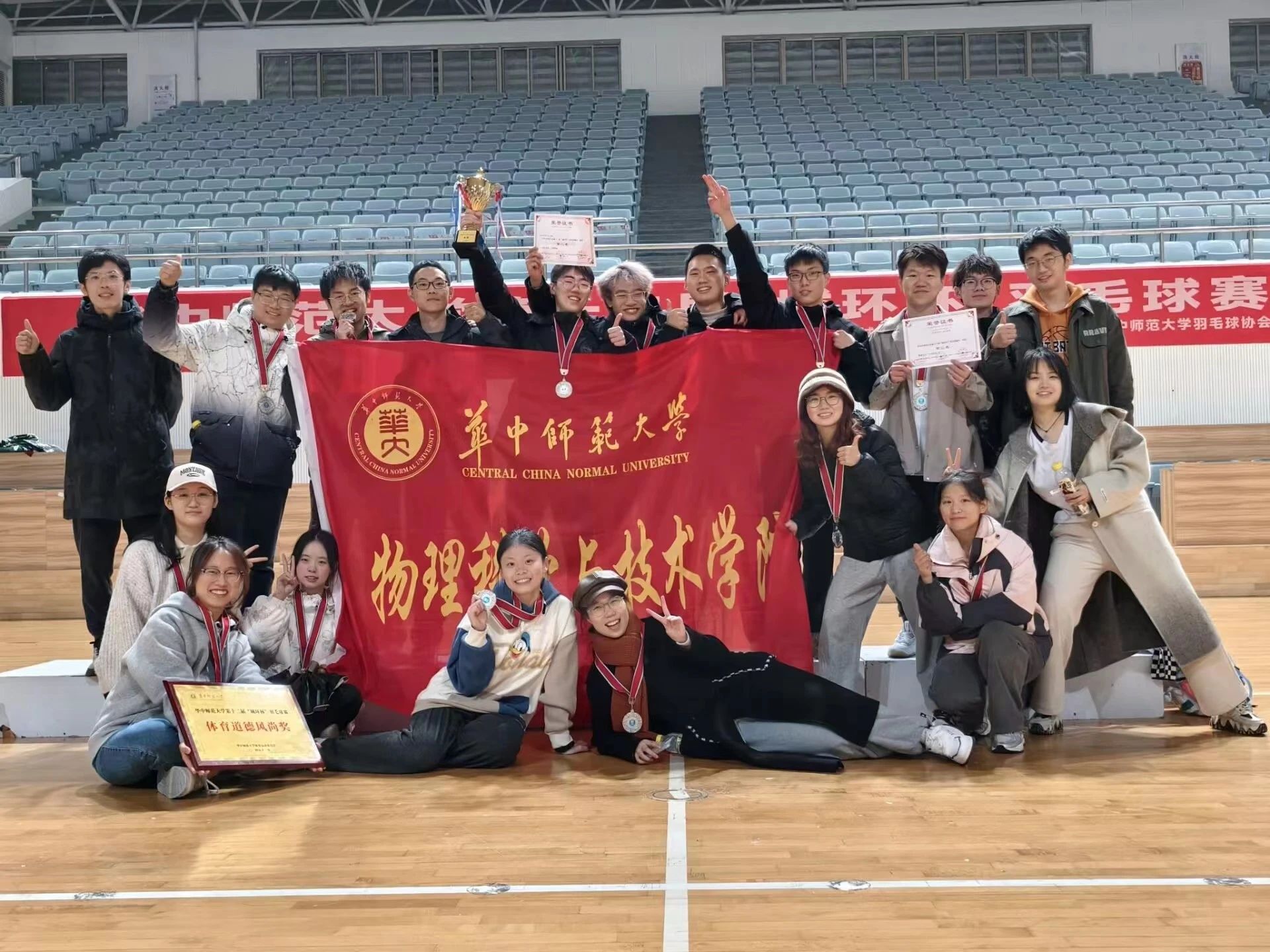 11月22日至24日,华中师范大学第十二届“城环杯”羽毛球赛事火热举办,物院羽毛球队凭借卓越的竞技能力和顽强的拼搏精神,最终荣获比赛亚军并获评道德风尚奖。