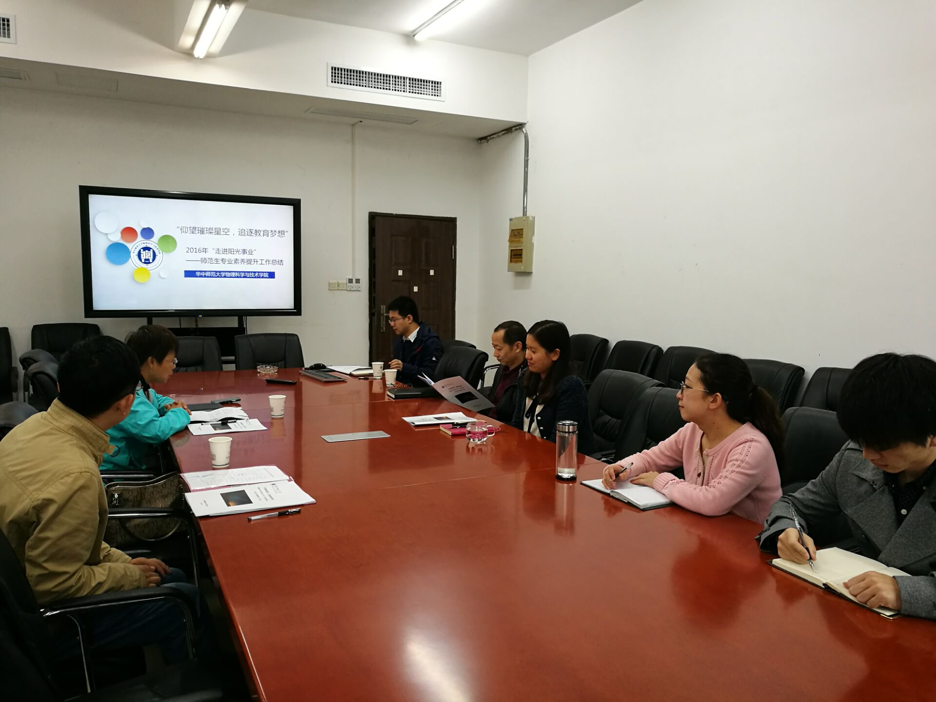 10月26日,教师教育学院吴梦文副院长一行到学院进行师范生专业能力训练工作目标考核中期检查座谈,听取学院对教师教育学院师范生专业能力提升工作的意见和建议,学院刘守印副院长、吴建成副书记和各年级师范专业辅导员参加了座谈会。