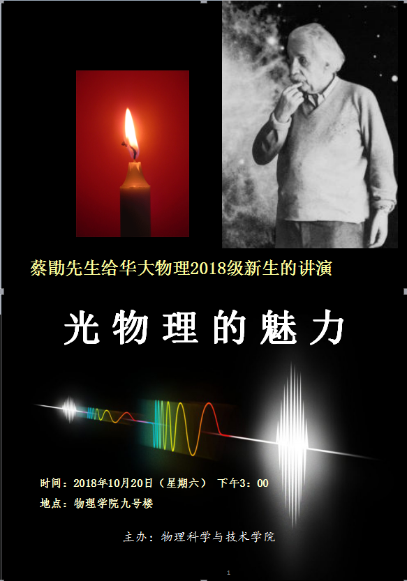 蔡勖先生给华大物理2018级新生的讲演(2018年10月20日)