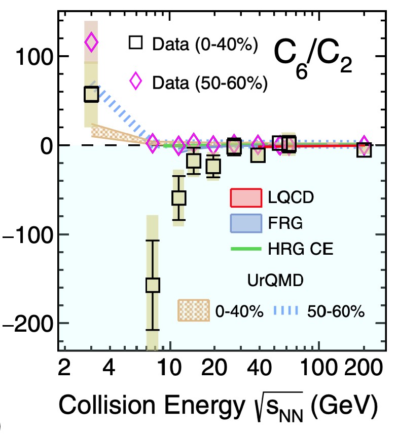 物理学院罗晓峰教授课题组在高能重离子碰撞实验中研究高温高密核物质相变的实验研究中取得新进展。课题组与来自美国劳伦斯伯克利国家实验室(LBNL)、加州大学戴维斯分校、日本筑波大学及印度国家科学教育研究所的科研人员合作,利用相对论重离子对撞机(RHIC)产生的高能原子核束流进行对撞实验,探究了核物质在高温高密度状态下强子物质和夸克胶子等离子相的相变现象。该实验研究分析了高能重离子对撞机自2010年起近十年采集的海量的实验数据,对净质子数分布的高阶累积矩进行测量。实验测量发现,0-40%中心碰撞的六阶累积矩(C6/C2)随着碰撞能量的降低逐渐变为负值,但在最低碰撞能量3 GeV时变为正值。实验观测到的负的六阶累积矩以及各阶次的层级(hierarchy)现象与从第一性原理出发的格点QCD的计算结果相符合,揭示出高能核碰撞中热化夸克胶子等离子体已经形成且强子相和夸克物质相为平滑穿越。最低能量与高能量在测量值和符号都显示出明显差异,意味着热密核物质状态方程发生了明显的改变,3-20 GeV将是第二阶段能量扫描搜寻QCD相变临界点的重点能区。该研究于2023年2月24日发表在国际权威物理杂志《物理评论快报》上。