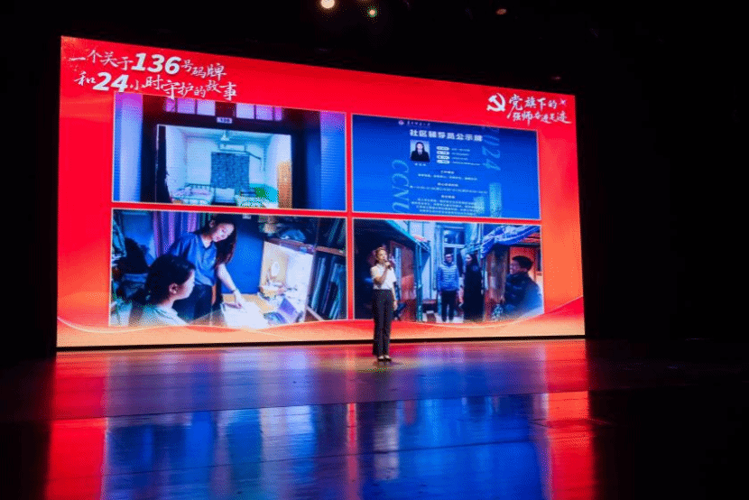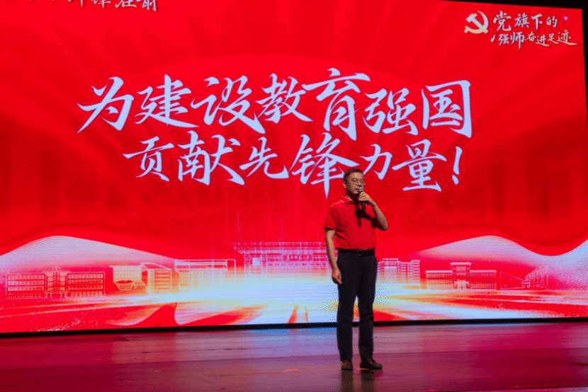 会上,学院党委书记金新利、教师党员舒佳欣与全校其他20余名师生党员代表深情讲述《党旗下的强师奋进足迹》沉浸式党课。在“强师提能”行动篇章中,舒佳欣作为一名住楼辅导员,讲述了一个关于136号码牌和24小时守护的故事。在“强师创优”行动篇章中,金新利讲述了学院党委如何继续弘扬党建光荣传统,团结进取、创优争先,把小写的“你我”荟聚成大写的“我们”,为教育科技人才一体化发展发出“物理声音”、积蓄“华师力量”的故事。