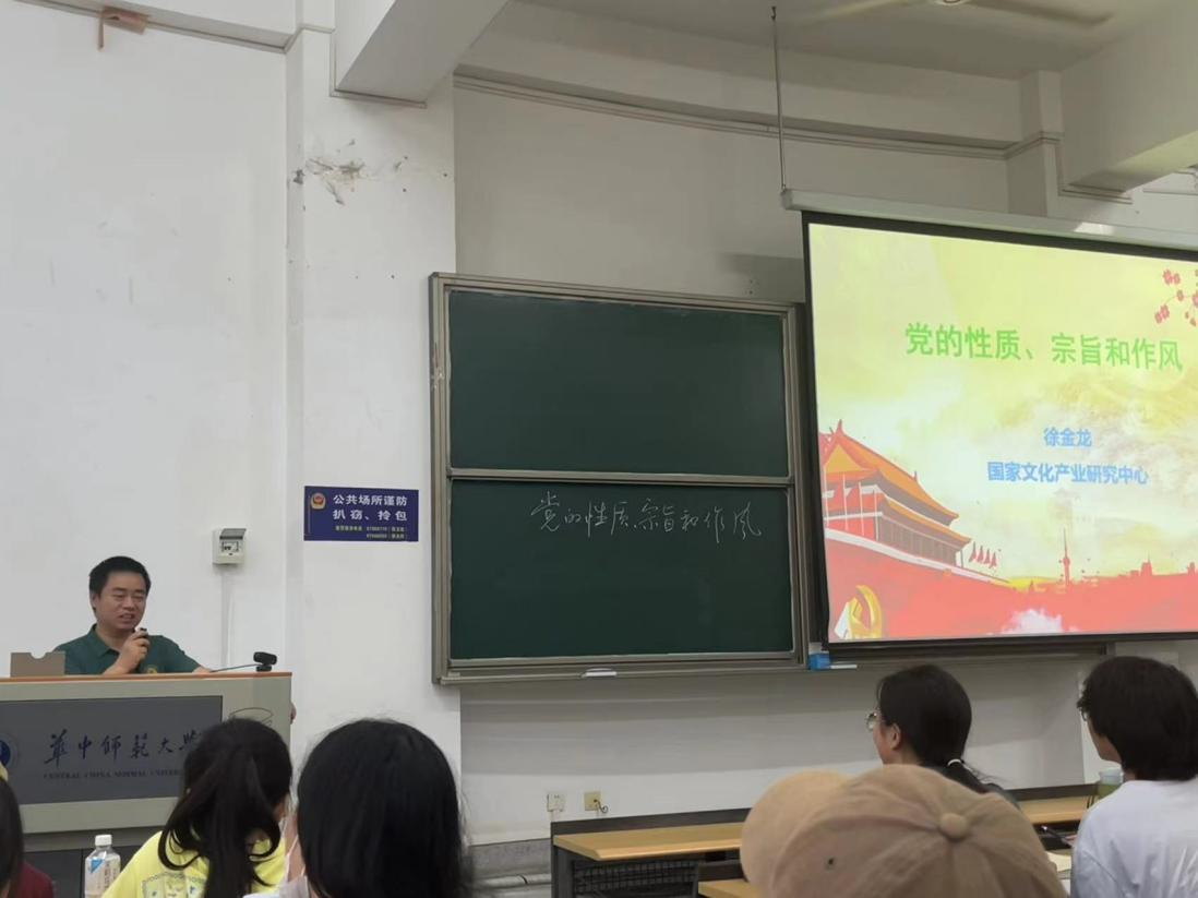 培训班第六讲由徐金龙老师主讲,他围绕《中国共产党的性质、宗旨和作风》主题,为同学们播放了《建党伟业》中共一大召开的片段、武汉好人吴天祥等视频资料,以此为切入点详细地讲述了中国共产党的性质、宗旨和作风,并表示青春正当时,希望学员学习优秀党员前辈的优良作风,艰苦奋斗。