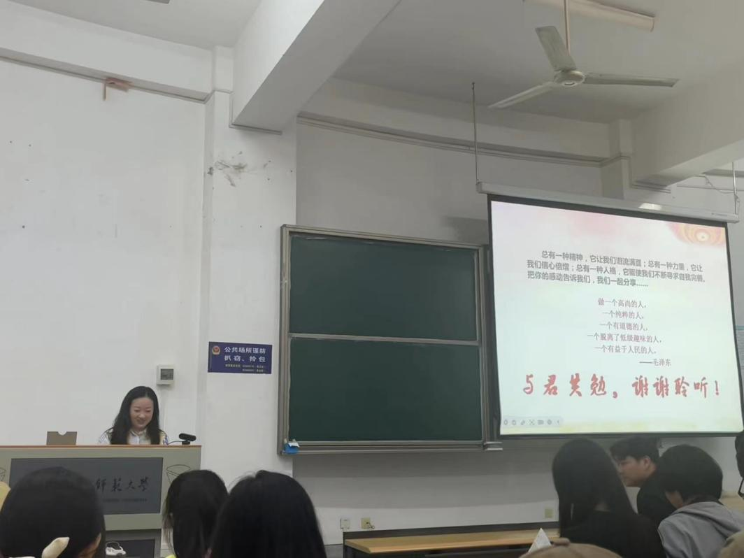 郭春娥老师以《中国共产党党员条件及发展党员工作程序》为主题展开第五次授课。郭老师通过对“申请入党的基本条件”、“党员的基本要求”、“端正入党动机”以及“发展党员的基本程序”四个方面进行讲授,帮助学员明确发展成为一名党员需要具备的条件及入党的基本流程,引导学员通过理论学习与实践端正入党动机,早日在思想上入党。